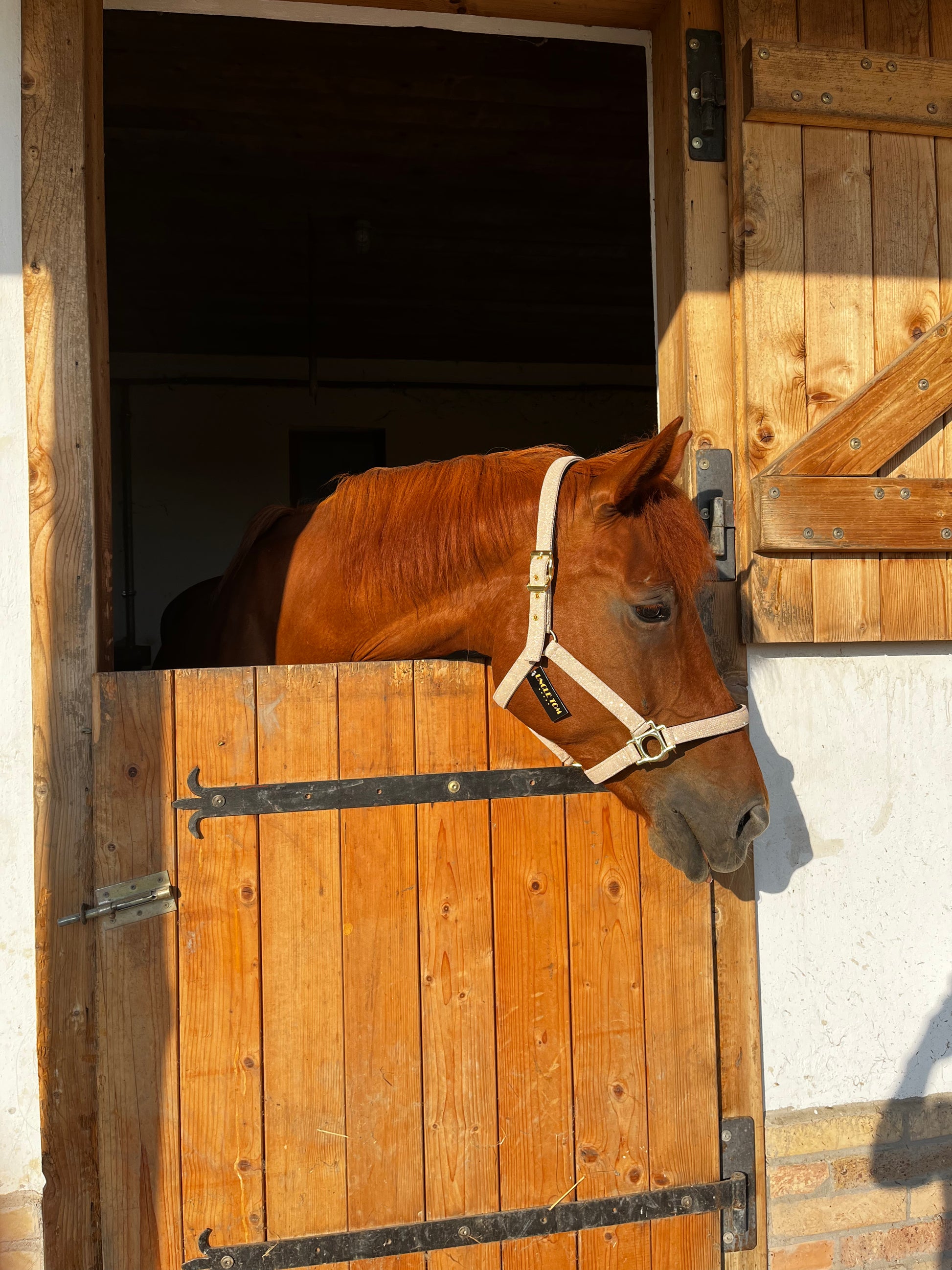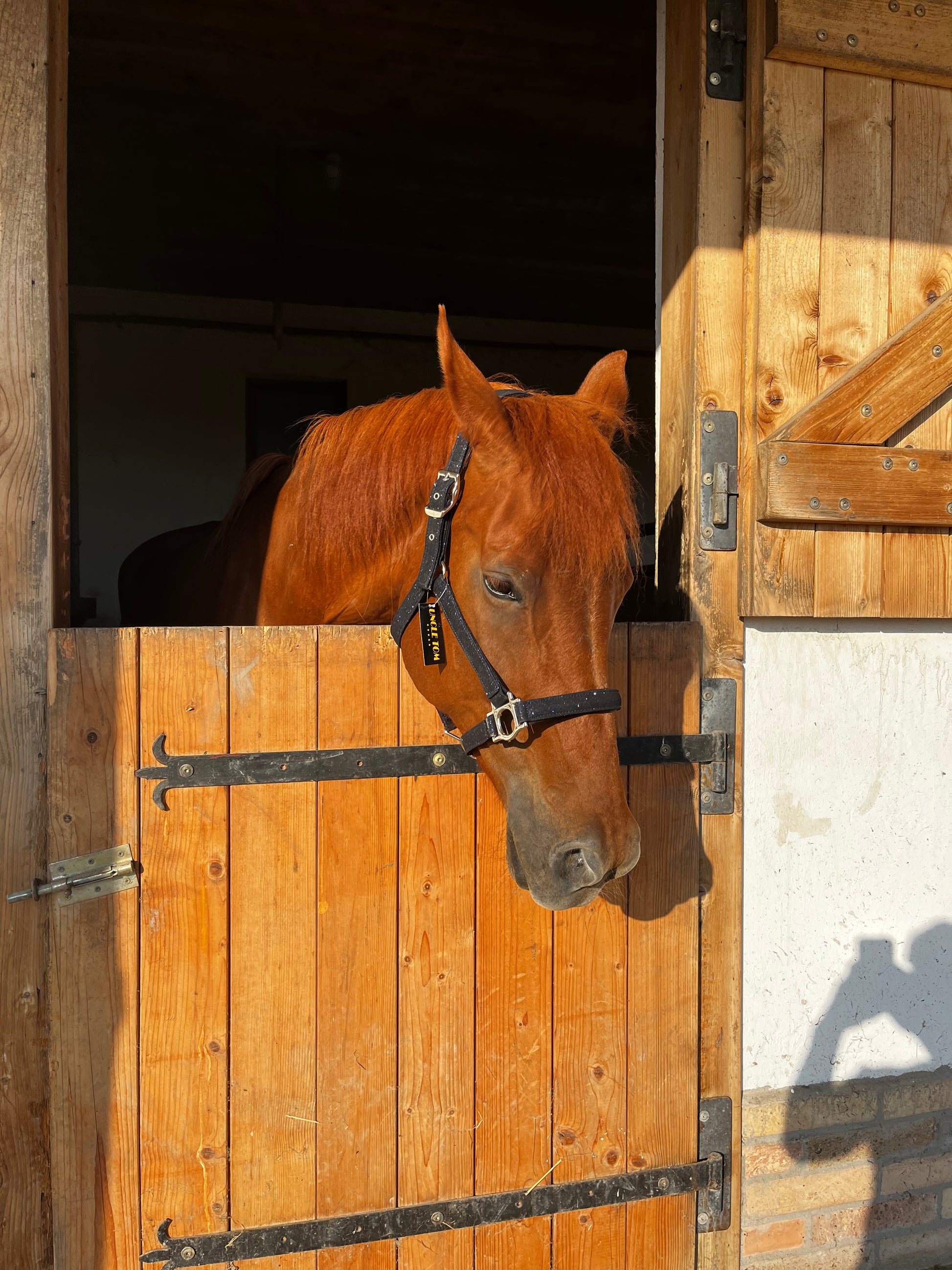 A fejszíj szimmetrikusan állítható, az orrszíj pedig alul is szabályozható, így a kötőfék pontosan illeszthető bármilyen fejformához. A masszív veretek és megbízható karabiner hosszú élettartamot és biztonságos használatot garantálnak.