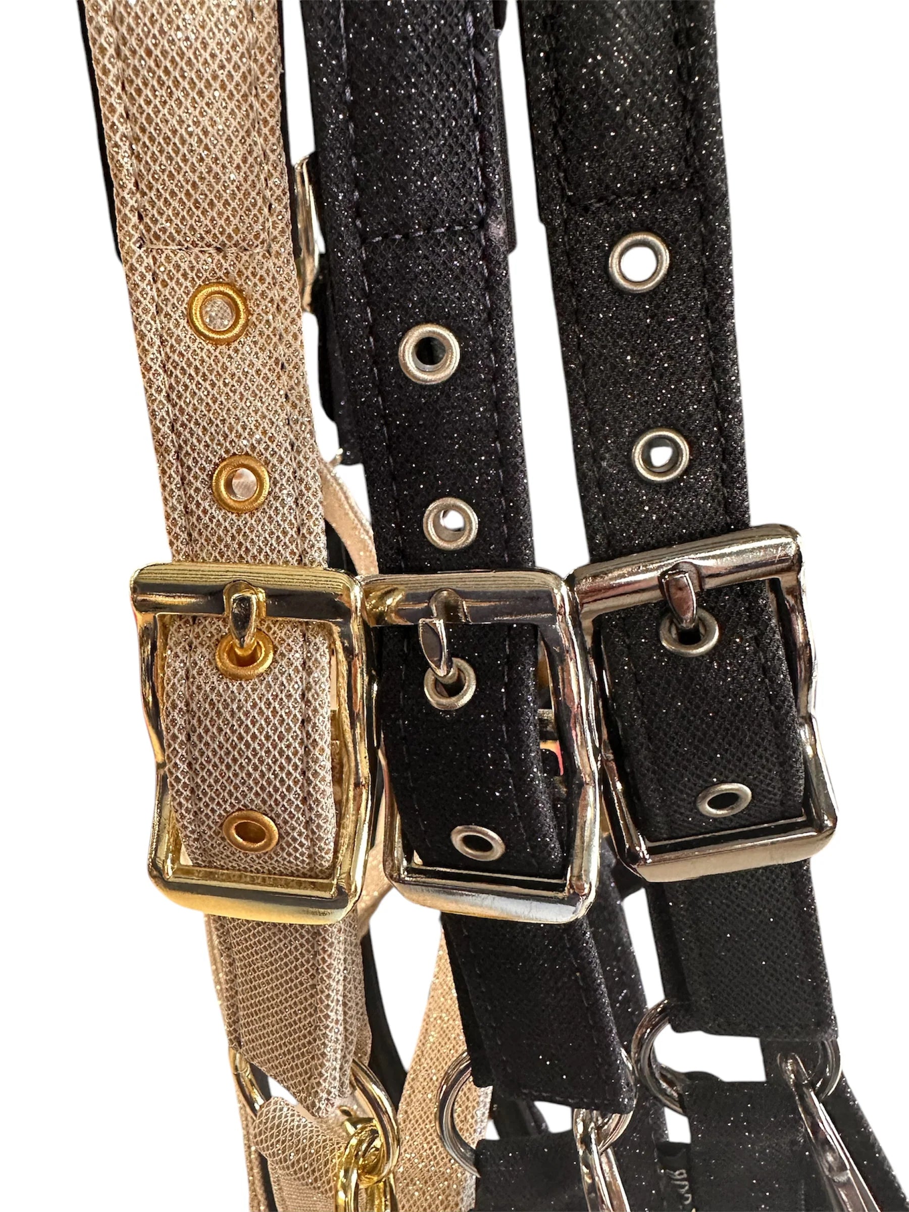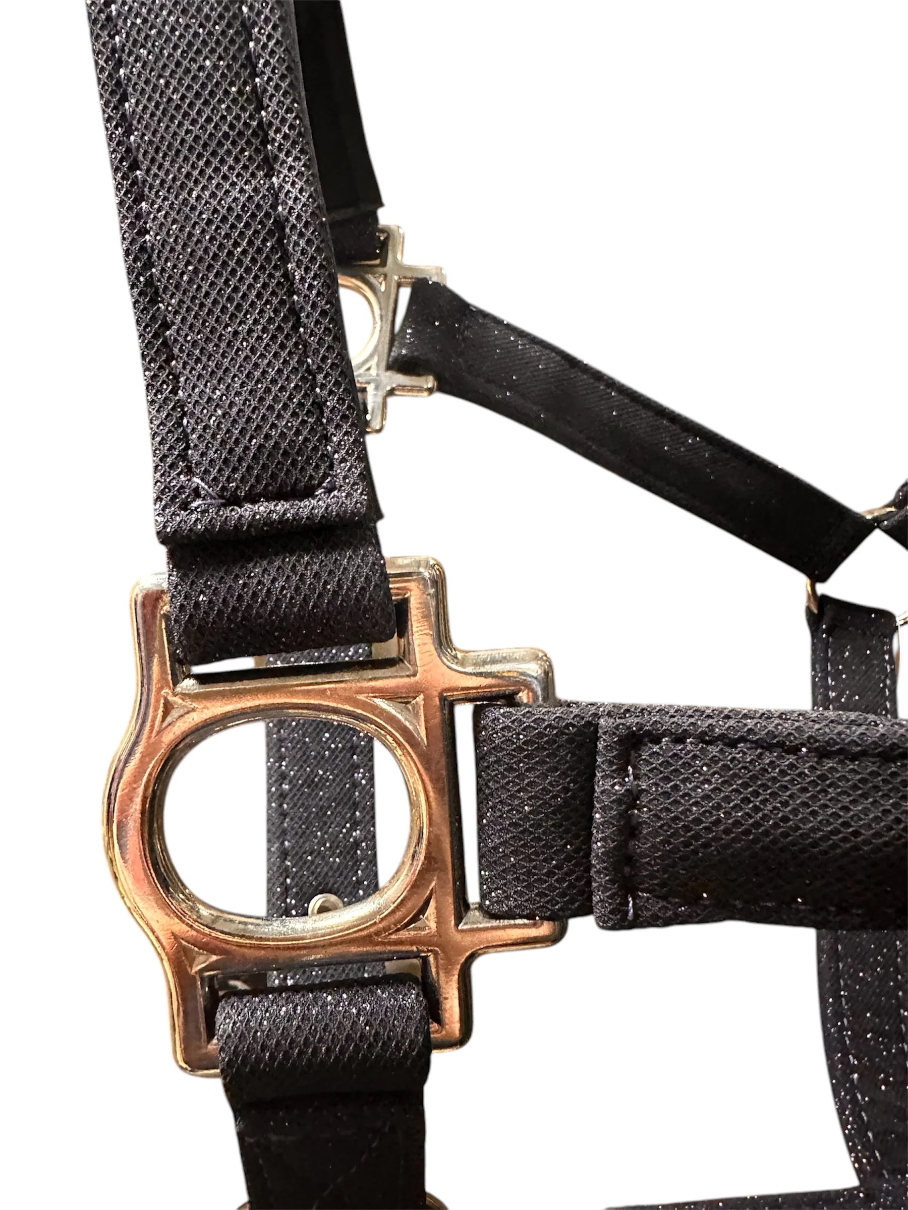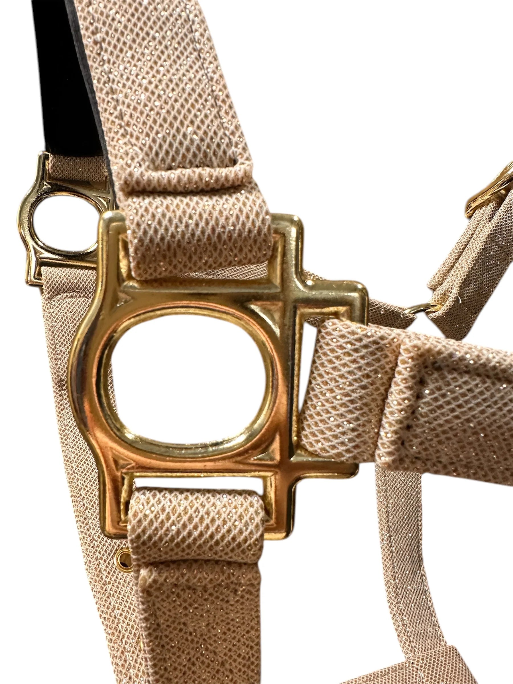 Elegáns, csillogó felületű gurtnis kötőfék, melyet prémium minőségű glitteres anyag és rendkívül puha, szivacsozott bélés tesz különlegessé.